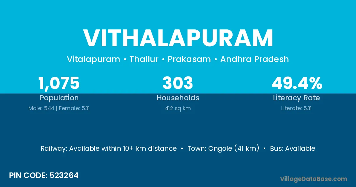 Vithalapuram village has a total population of 1,075 people, of which 544 are males and 531 are females.