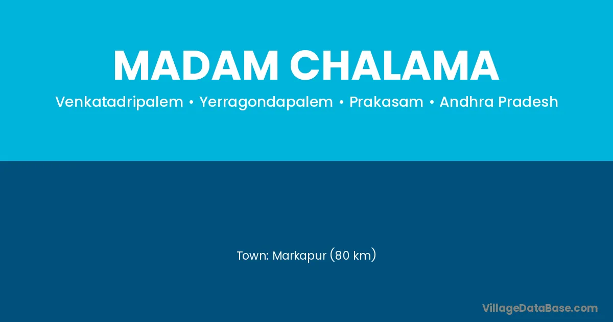Markapur (80 km) is the nearest town to Madam Chalama village for major economic activities and is located approximately 80 km away.