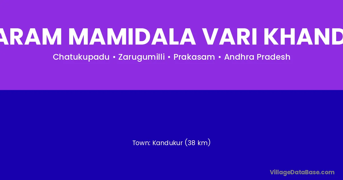 Kandukur (38 km) is the nearest town to Ilavaram Mamidala Vari Khandrika village for major economic activities and is located approximately 38 km away.