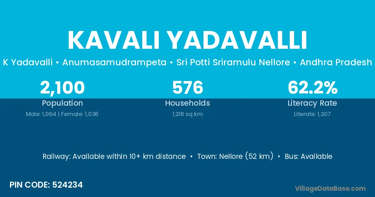 According to Census 2011 information, the village code of Kavali Yadavalli village is 524234.