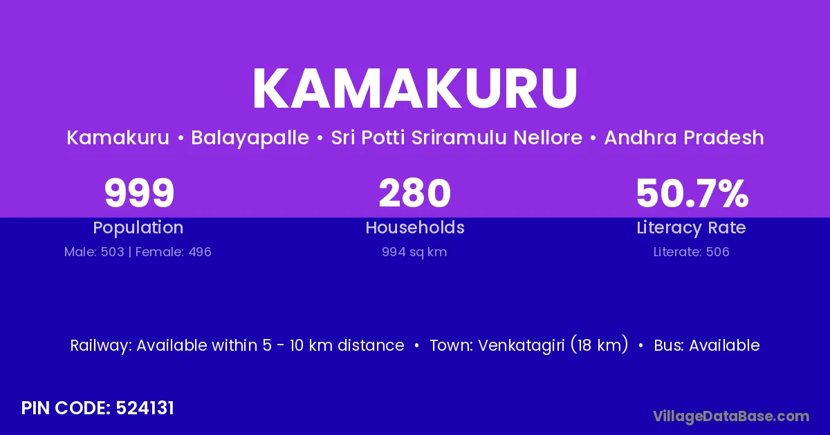 Venkatagiri (18 km) is the nearest town to Kamakuru village for major economic activities and is located approximately 18 km away.
