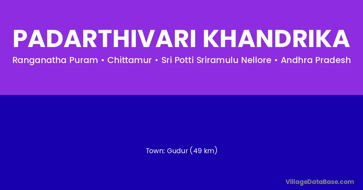 Gudur (49 km) is the nearest town to Padarthivari Khandrika village for major economic activities and is located approximately 49 km away.