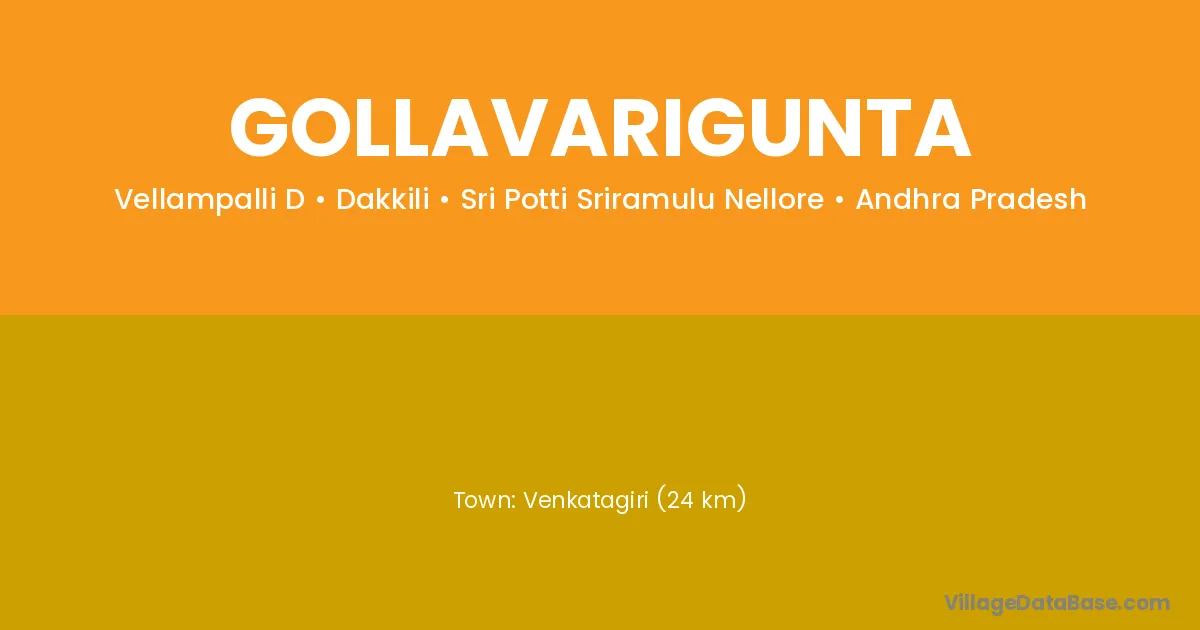 Venkatagiri (24 km) is the nearest town to Gollavarigunta village for major economic activities and is located approximately 24 km away.