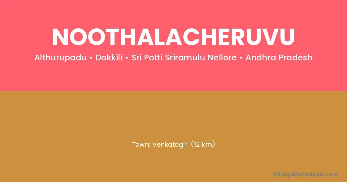 Venkatagiri (12 km) is the nearest town to Noothalacheruvu village for major economic activities and is located approximately 12 km away.