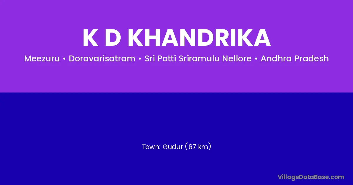 Gudur (67 km) is the nearest town to K D Khandrika village for major economic activities and is located approximately 67 km away.