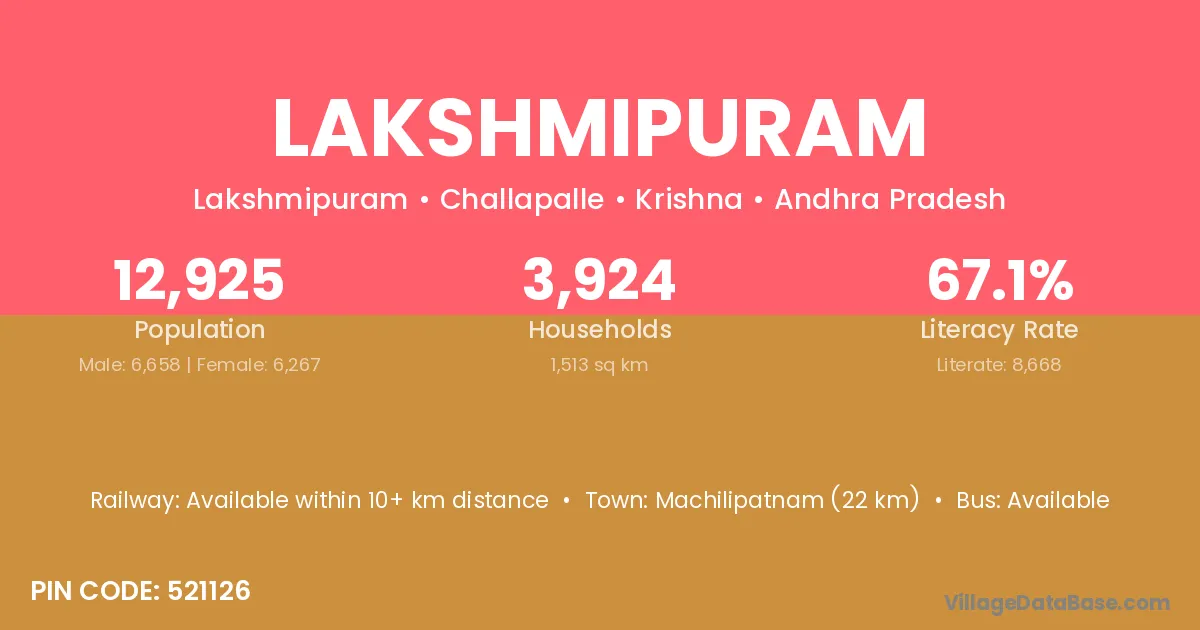 According to Census 2011 information, the village code of Lakshmipuram village is 524225.