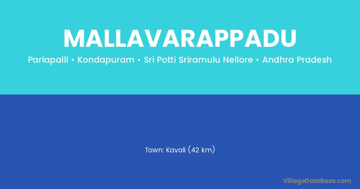 Kavali (42 km) is the nearest town to Mallavarappadu village for major economic activities and is located approximately 42 km away.