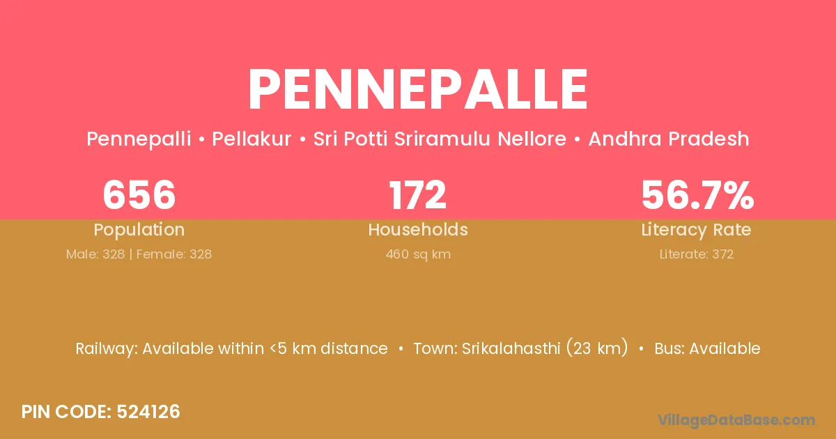According to Census 2011 information, the village code of Pennepalle village is 524126.