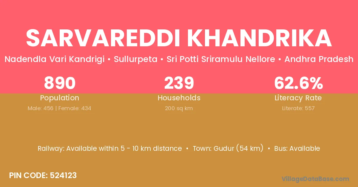 Sarvareddi Khandrika village has a total population of 890 people, of which 456 are males and 434 are females.