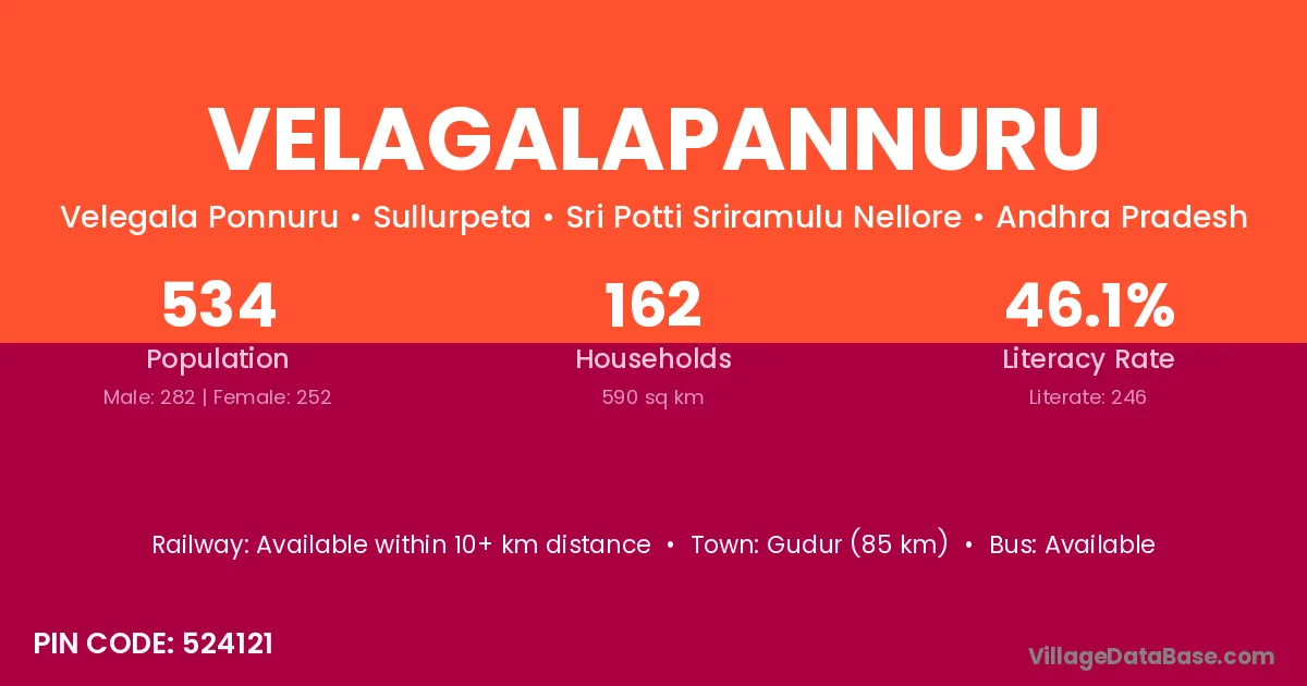 Velagalapannuru village has a total population of 534 people, of which 282 are males and 252 are females.