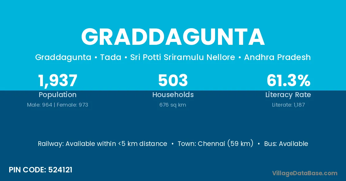 Chennai (59 km) is the nearest town to Graddagunta village for major economic activities and is located approximately 59 km away.