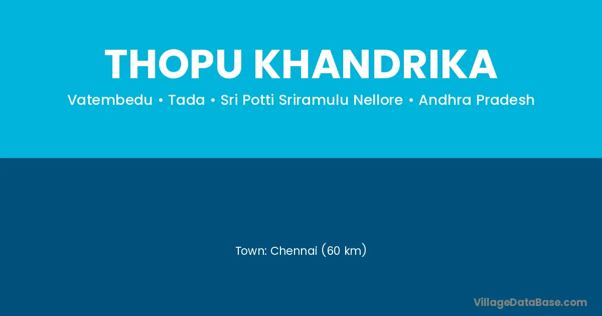 Chennai (60 km) is the nearest town to Thopu Khandrika village for major economic activities and is located approximately 60 km away.