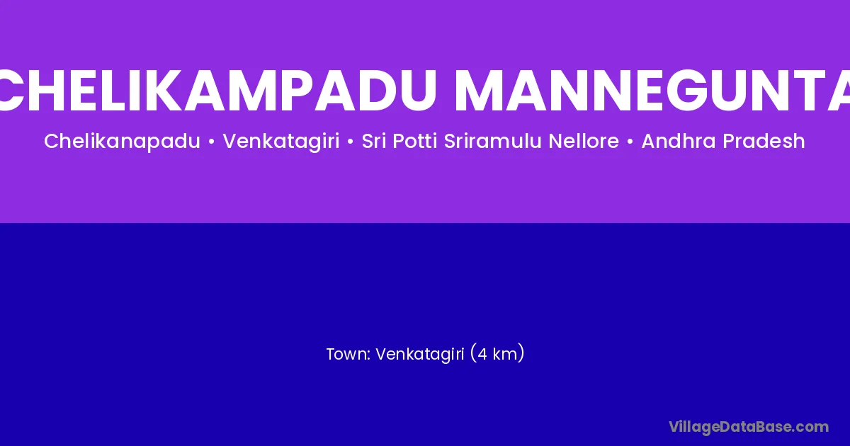 Venkatagiri (4 km) is the nearest town to Chelikampadu Mannegunta village for major economic activities and is located approximately 4 km away.