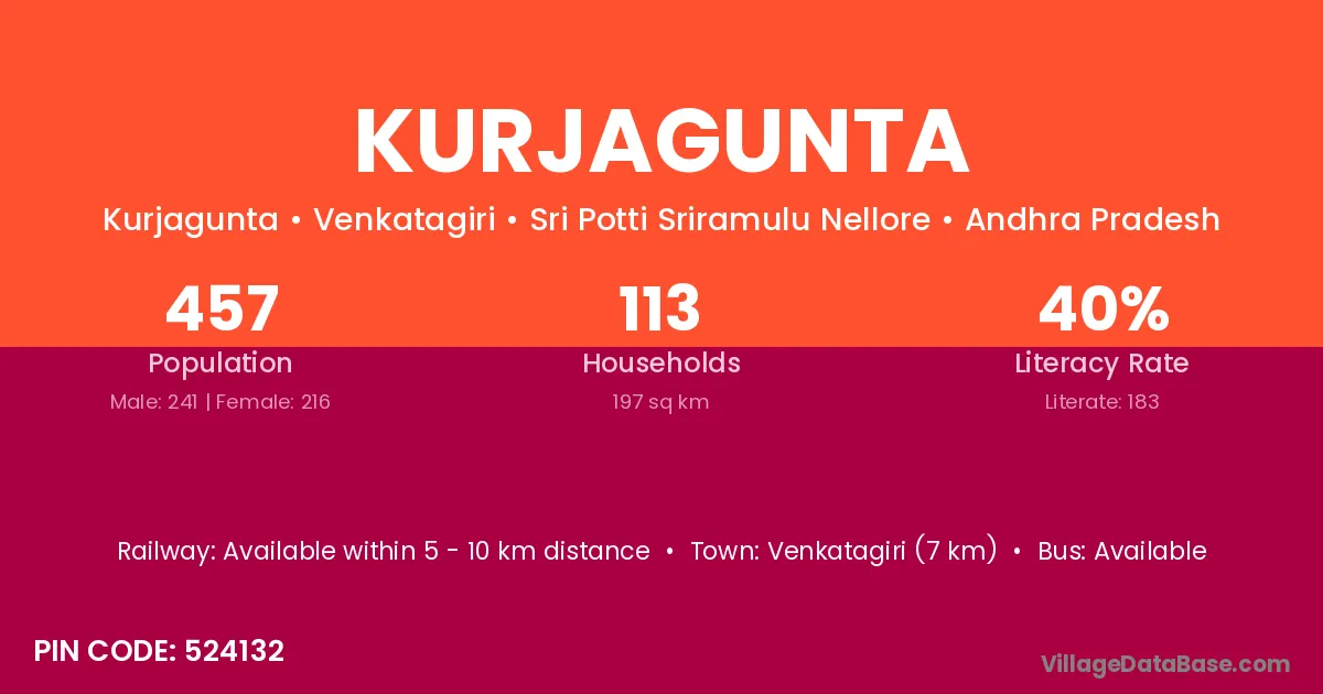 Venkatagiri (7 km) is the nearest town to Kurjagunta village for major economic activities and is located approximately 7 km away.