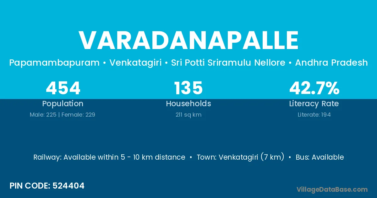 Venkatagiri (7 km) is the nearest town to Varadanapalle village for major economic activities and is located approximately 7 km away.