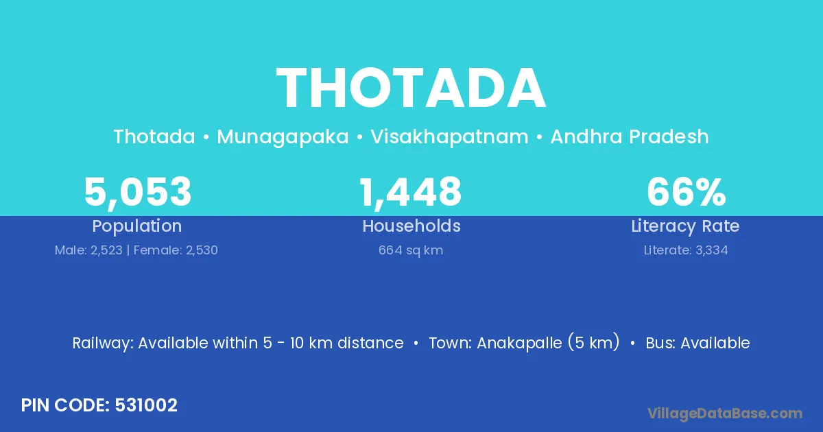 According to Census 2011 information, the village code of Thotada village is 532484.