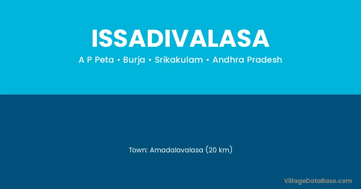 Amadalavalasa (20 km) is the nearest town to Issadivalasa village for major economic activities and is located approximately 20 km away.