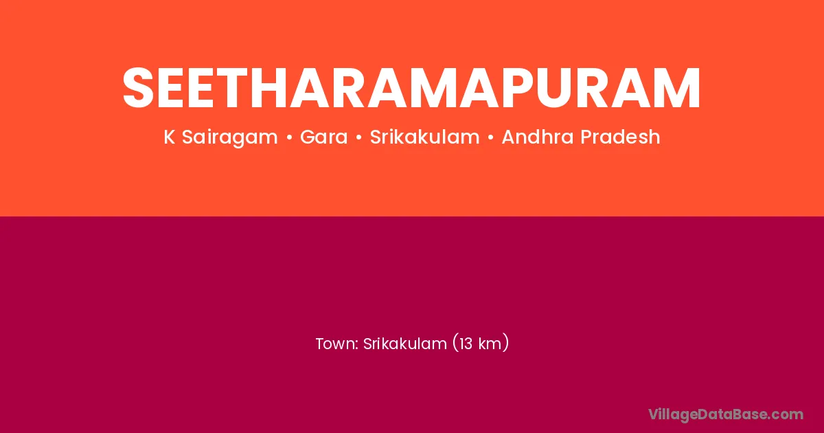Srikakulam (13 km) is the nearest town to Seetharamapuram village for major economic activities and is located approximately 13 km away.