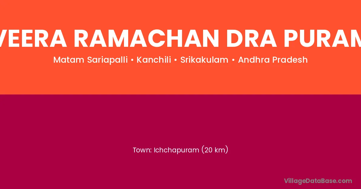Ichchapuram (20 km) is the nearest town to Veera Ramachan Dra Puram village for major economic activities and is located approximately 20 km away.
