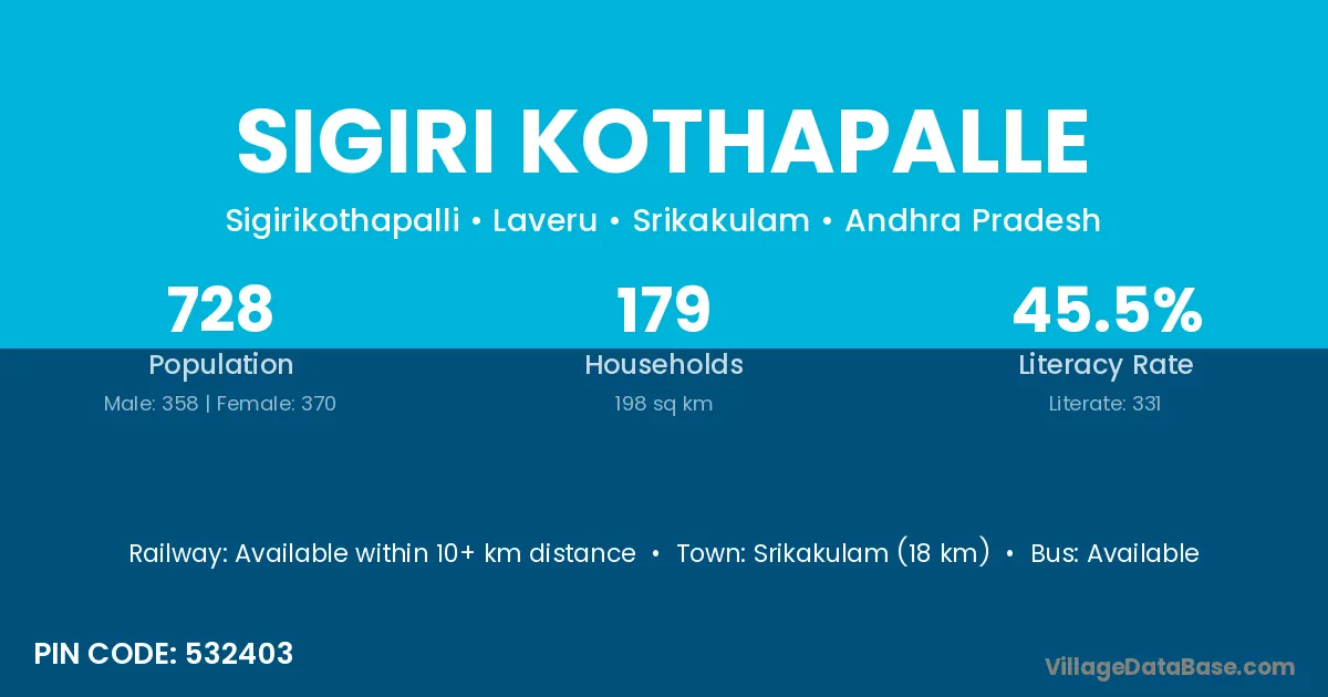 According to Census 2011 information, the village code of Sigiri Kothapalle village is 532403.