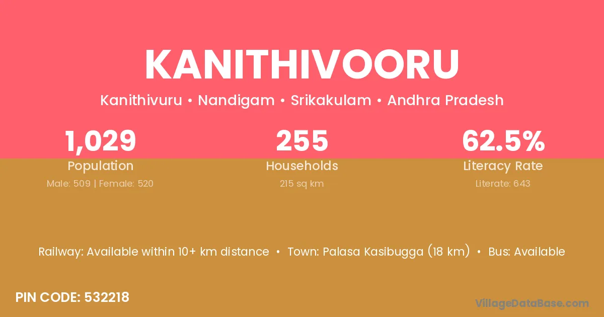 Kanithivooru village has a total population of 1,029 people, of which 509 are males and 520 are females.