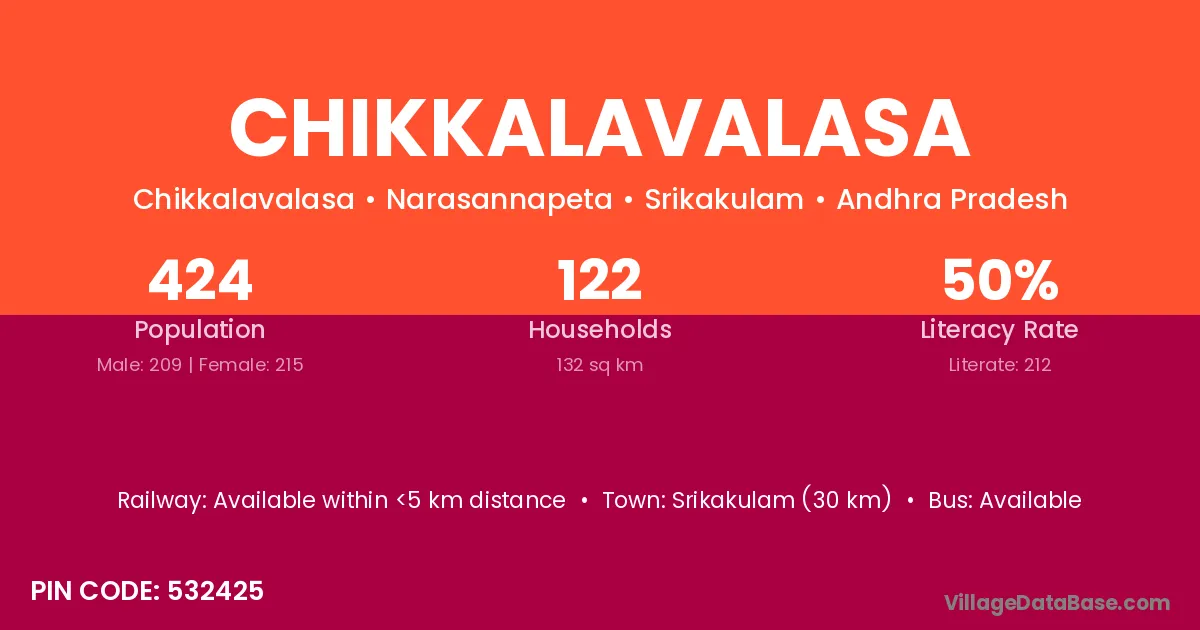 Chikkalavalasa village has a total population of 424 people, of which 209 are males and 215 are females.