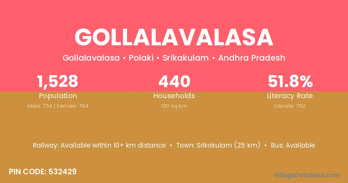 According to Census 2011 information, the village code of Gollalavalasa village is 532429.