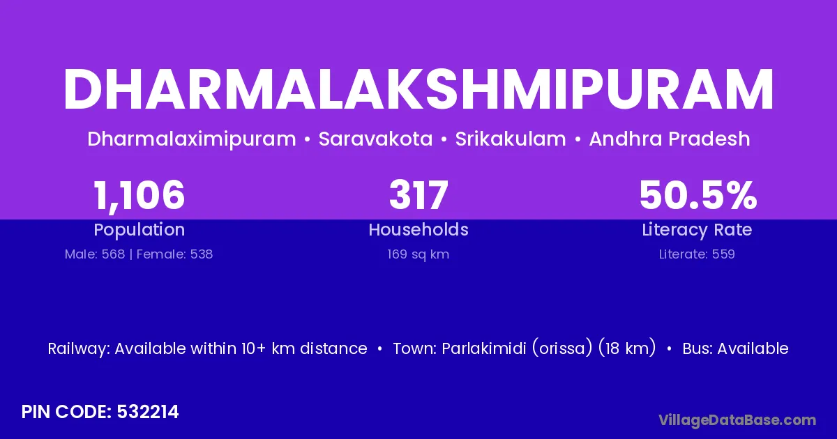 According to Census 2011 information, the village code of Dharmalakshmipuram village is 532214.