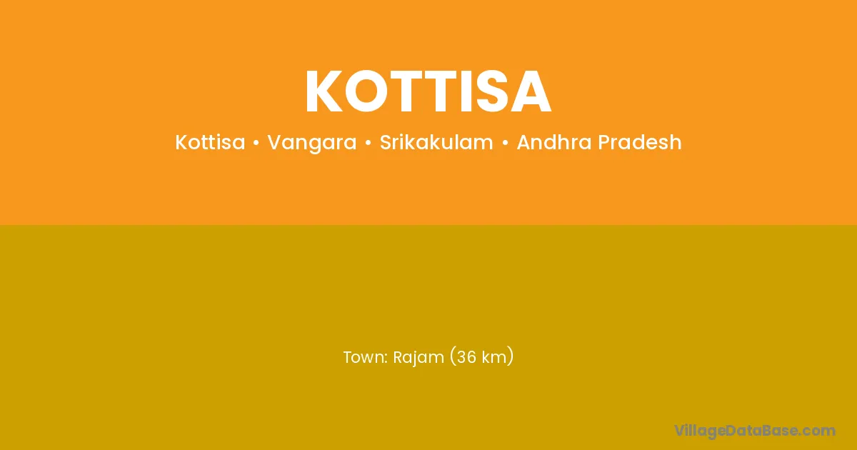 Rajam (36 km) is the nearest town to Kottisa village for major economic activities and is located approximately 36 km away.
