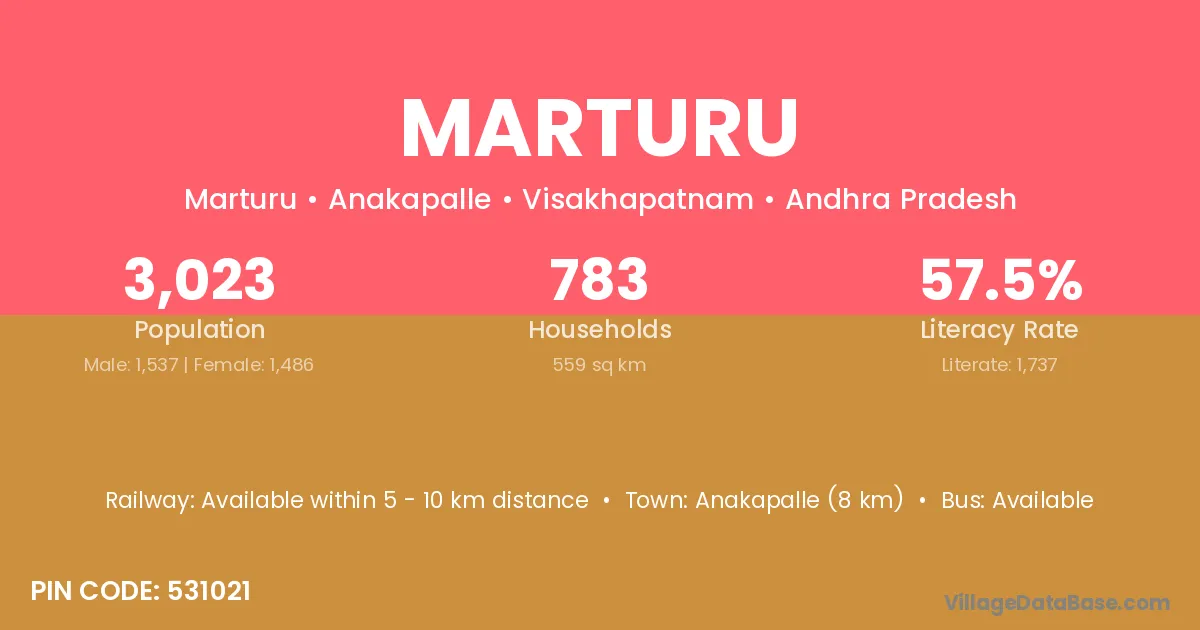 Anakapalle (8 km) is the nearest town to Marturu village for major economic activities and is located approximately 8 km away.