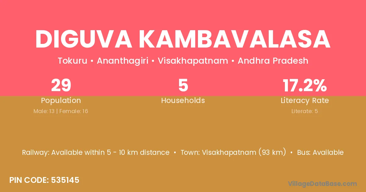 Diguva Kambavalasa village has a total population of 29 people, of which 13 are males and 16 are females.