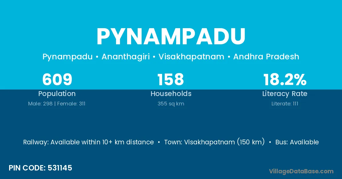 Pynampadu village has a total population of 609 people, of which 298 are males and 311 are females.