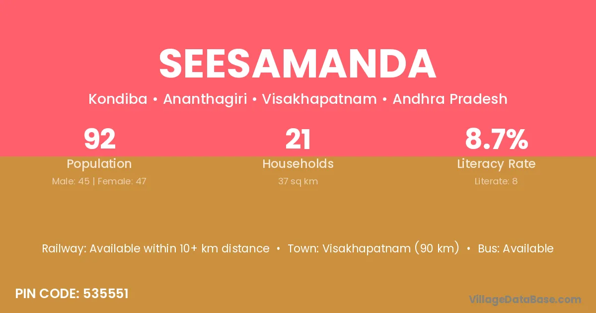 Seesamanda village has a total population of 92 people, of which 45 are males and 47 are females.