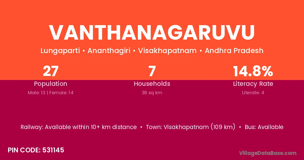 Vanthanagaruvu village has a total population of 27 people, of which 13 are males and 14 are females.