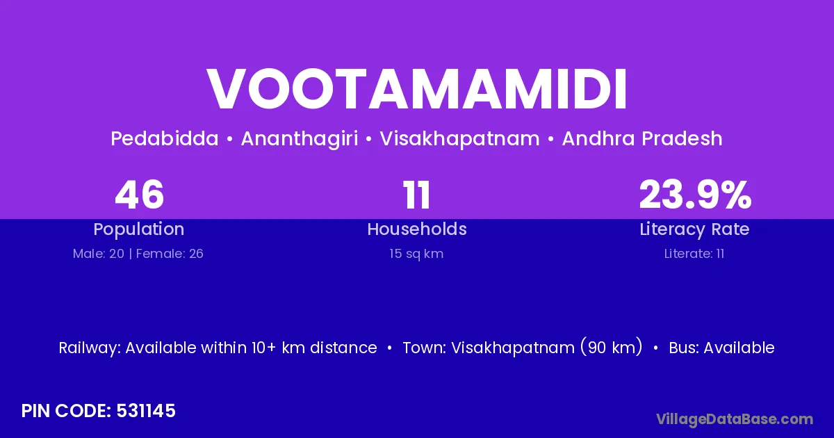 Vootamamidi village has a total population of 46 people, of which 20 are males and 26 are females.