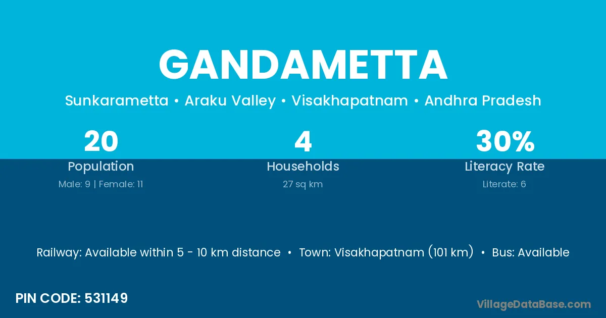 According to Census 2011 information, the village code of Gandametta village is 531149.