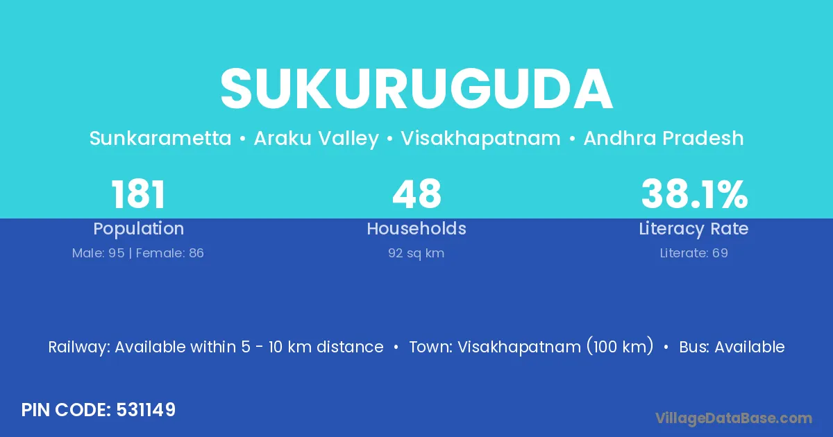 According to Census 2011 information, the village code of Sukuruguda village is 531149.