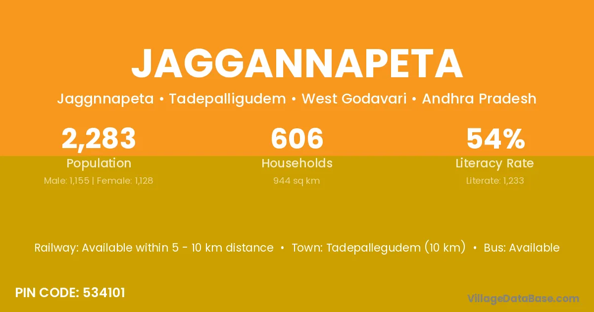 Anakapalle (15 km) is the nearest town to Jaggannapeta village for major economic activities and is located approximately 15 km away.