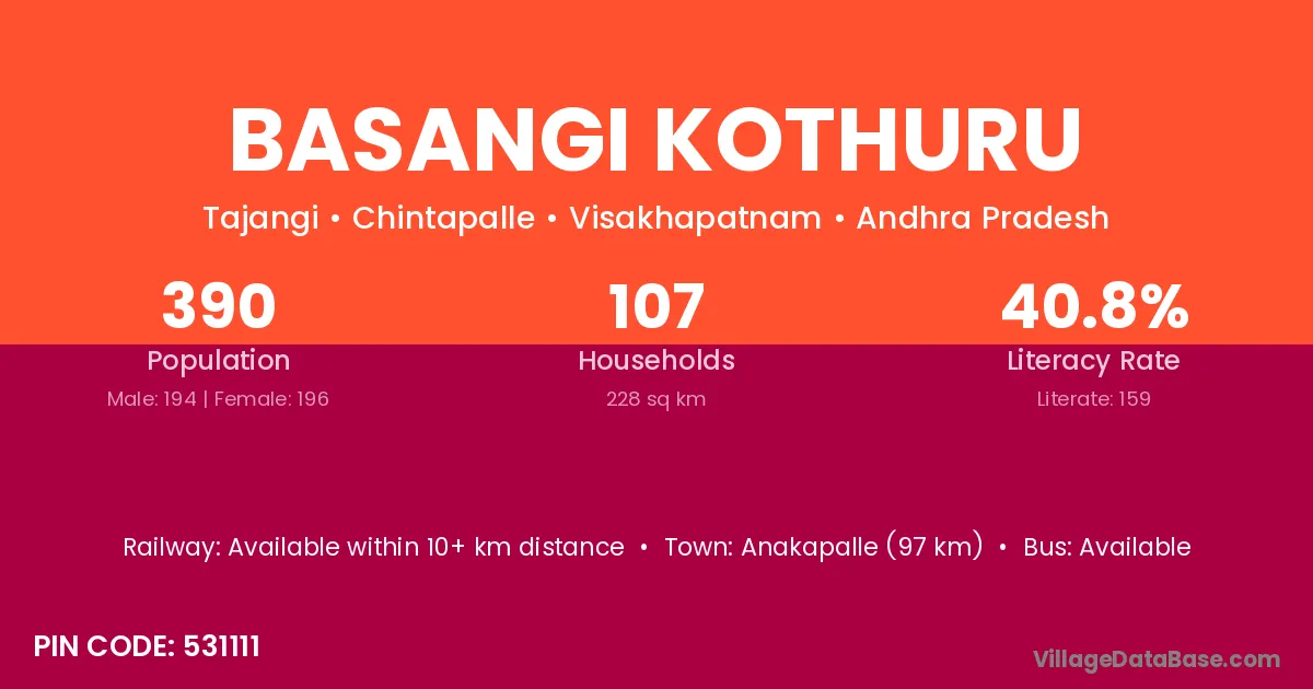 Basangi Kothuru village has a total population of 390 people, of which 194 are males and 196 are females.