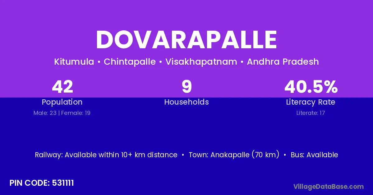 According to Census 2011 information, the village code of Dovarapalle village is 531111.