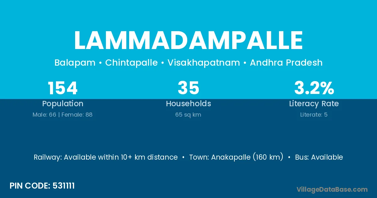 According to Census 2011 information, the village code of Lammadampalle village is 531111.