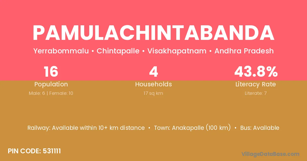 According to Census 2011 information, the village code of Pamulachintabanda village is 531111.