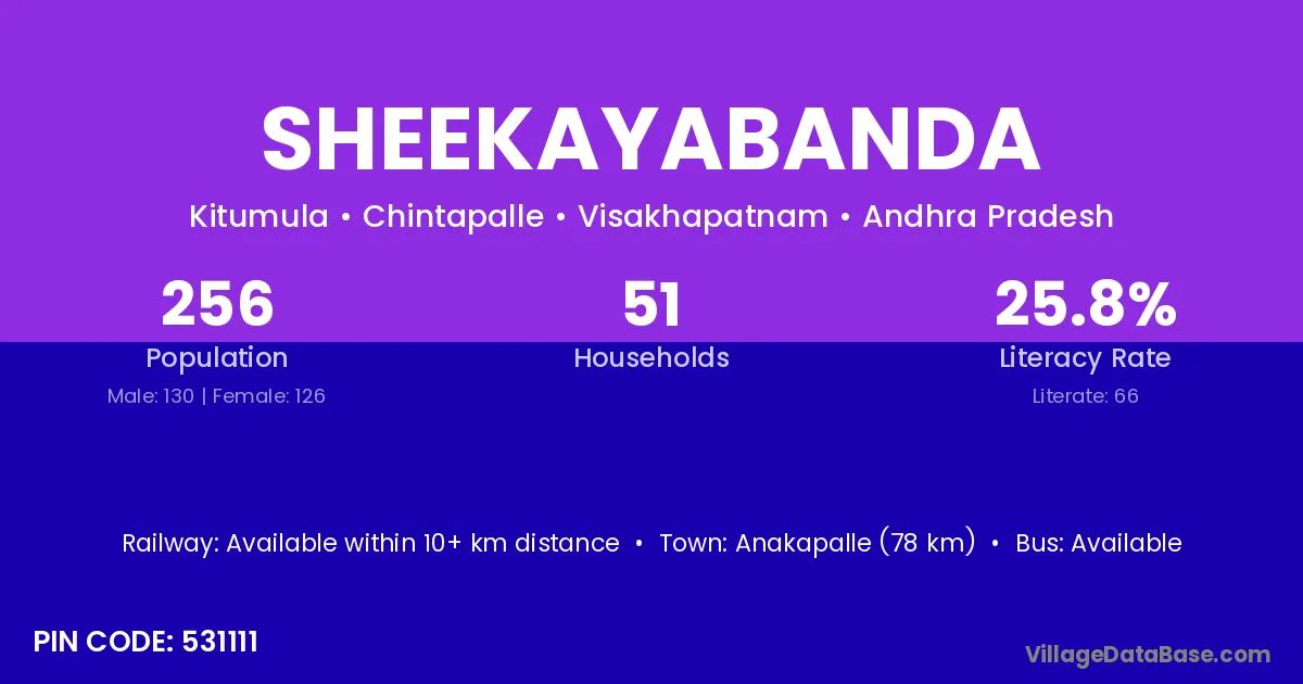 Sheekayabanda village has a total population of 256 people, of which 130 are males and 126 are females.