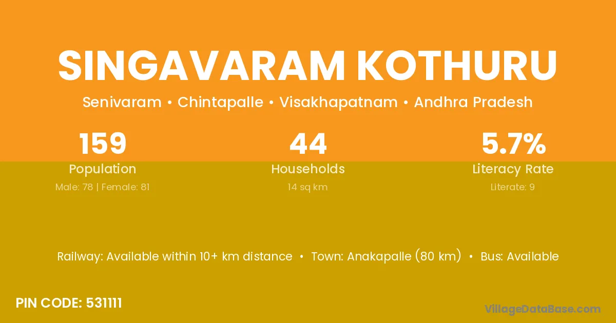 Singavaram Kothuru village has a total population of 159 people, of which 78 are males and 81 are females.