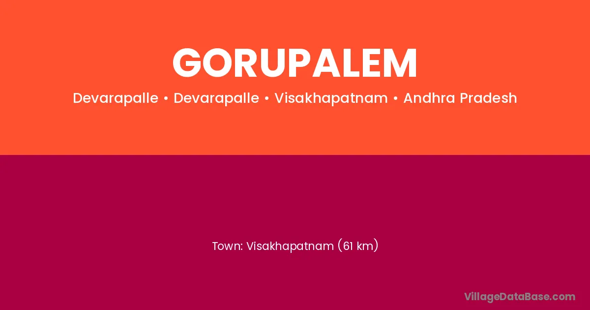 Visakhapatnam (61 km) is the nearest town to Gorupalem village for major economic activities and is located approximately 61 km away.