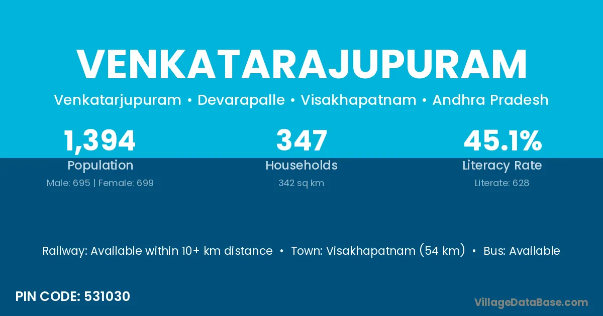 Venkatarajupuram village has a total population of 1,394 people, of which 695 are males and 699 are females.