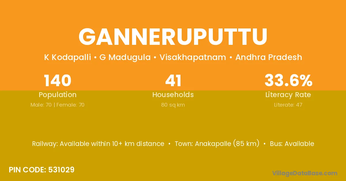 Ganneruputtu village has a total population of 140 people, of which 70 are males and 70 are females.