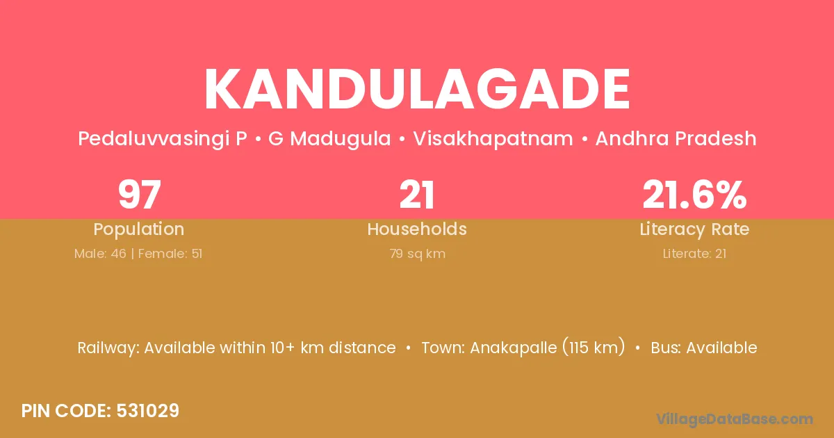 Kandulagade village has a total population of 97 people, of which 46 are males and 51 are females.