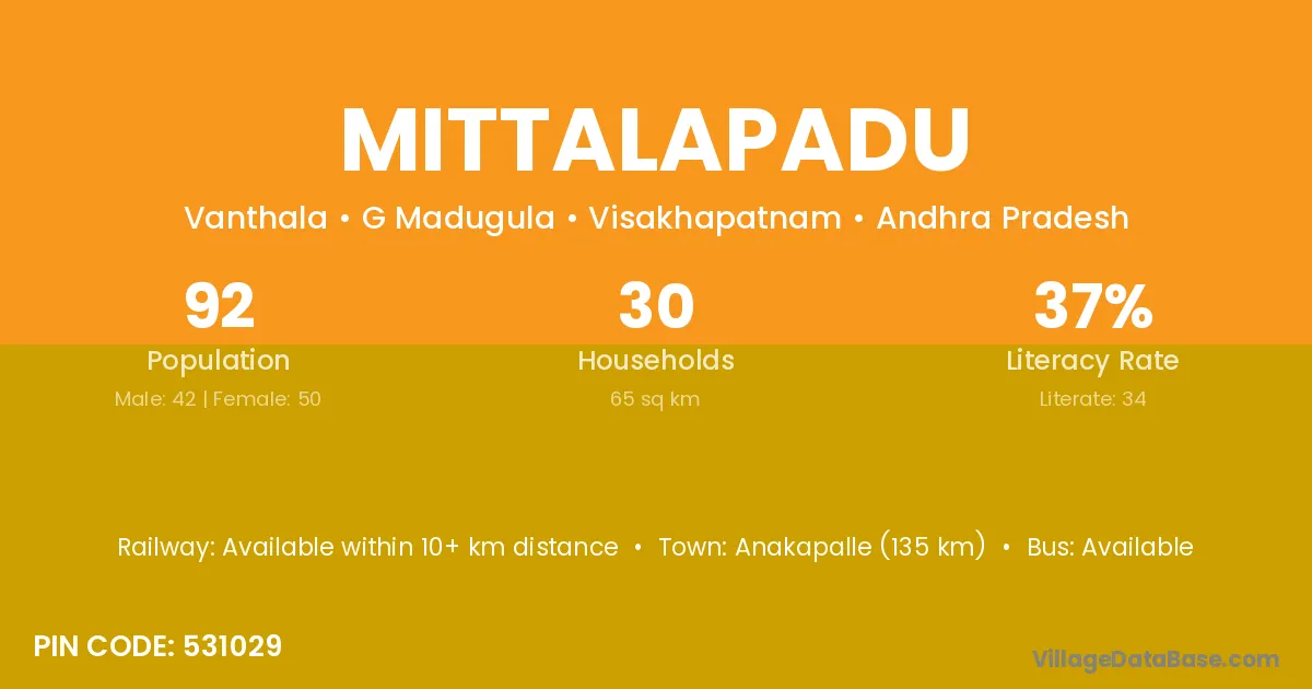 According to Census 2011 information, the village code of Mittalapadu village is 531029.
