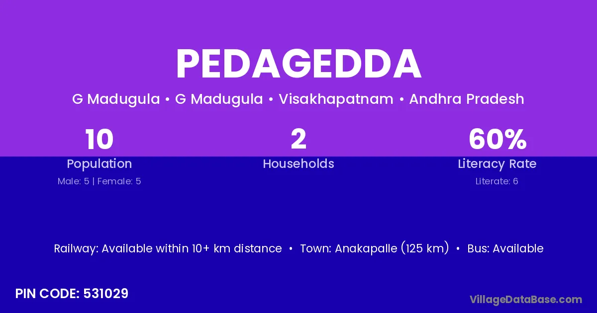 Pedagedda village has a total population of 10 people, of which 5 are males and 5 are females.